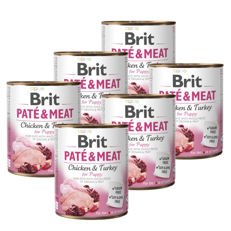 BRIT Dog Paté & Meat Puppy – mäsová paštéta pre šteňatá s kuracím mäsom 6x800g VÝHODNÉ BALENIE