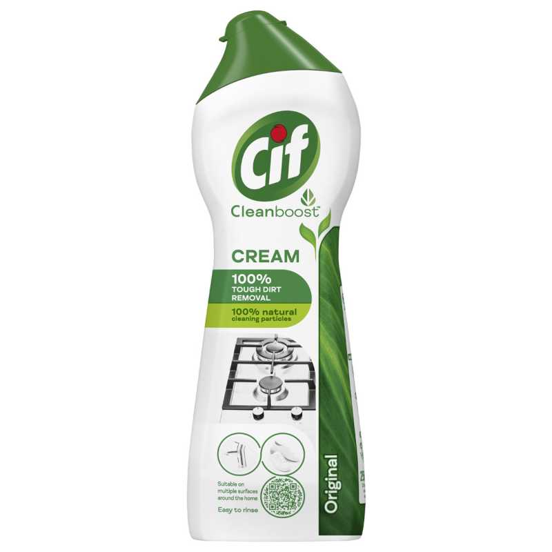 Cif krémový abrazívny čistiaci prípravok so 100% prírodnými čistiacimi časticami odstraňuje najodolnejšie nečistoty ako je pripálený tuk, pripálené zvyšky jedla alebo škvrny od vodného kameňa.