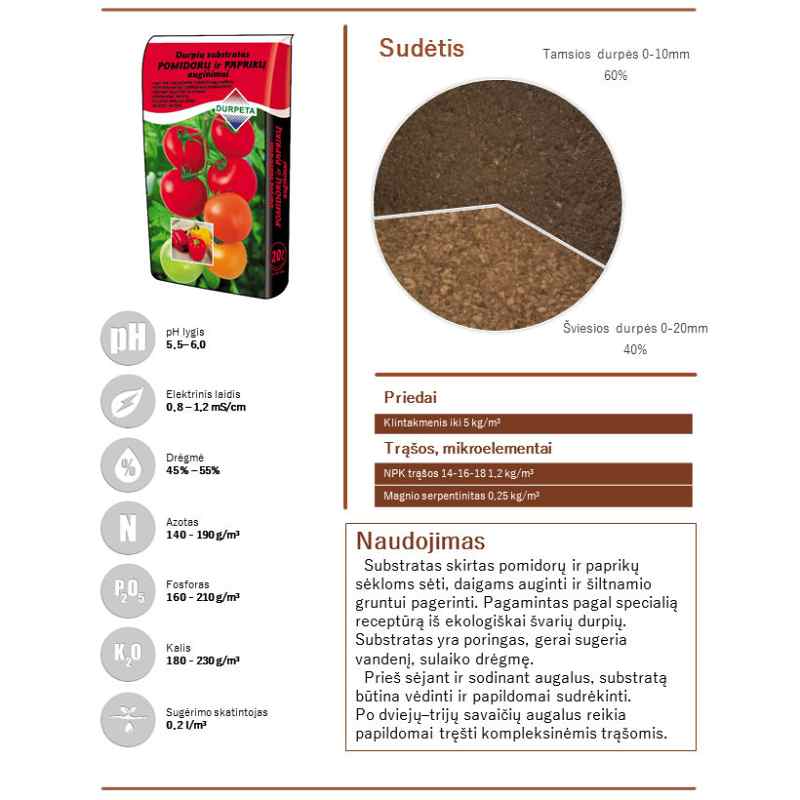 Špeciálny výsevný substrát určený na siatie semien paradajok, paprík a inej zeleniny, ako aj na pestovanie klíčkov a úpravu pôdy v skleníkoch. Substrát je vyrobený z ekologickej rašeliny podľa špeciálnej receptúry, má strednú frakciu, výbornú pórovitosť a schopnosť udržiavať vlhkosť, čo podporuje rýchle klíčenie a zdravý rast rastlín.