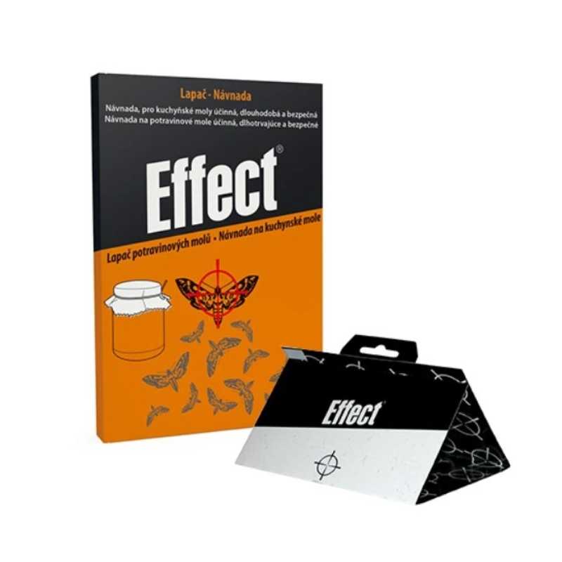 Lapač potravinových molí EFFECT je účinný a bezpečný spôsob ochrany potravín pred kuchynskými moľami. Lapač neobsahuje insekticídy, využíva prírodné feromóny, ktoré priťahujú samcov molí na lepiacu plochu, čím sa preruší ich rozmnožovací cyklus.