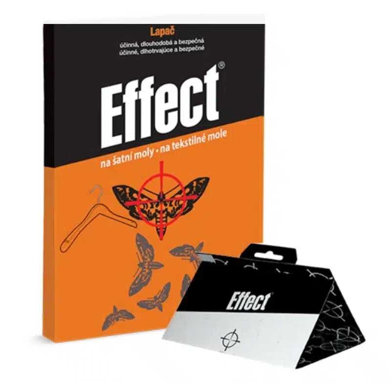 Lapač Effect je určený na účinnú a dlhodobú prirodzenú ochranu tkanín, oblečenia a kožuchov pred šatníkovými moľami. Lapač neobsahuje insekticídy, využíva prírodné feromóny, ktoré priťahujú mole na lepiacu plochu a tým pomáhajú prerušiť ich rozmnožovací cyklus.