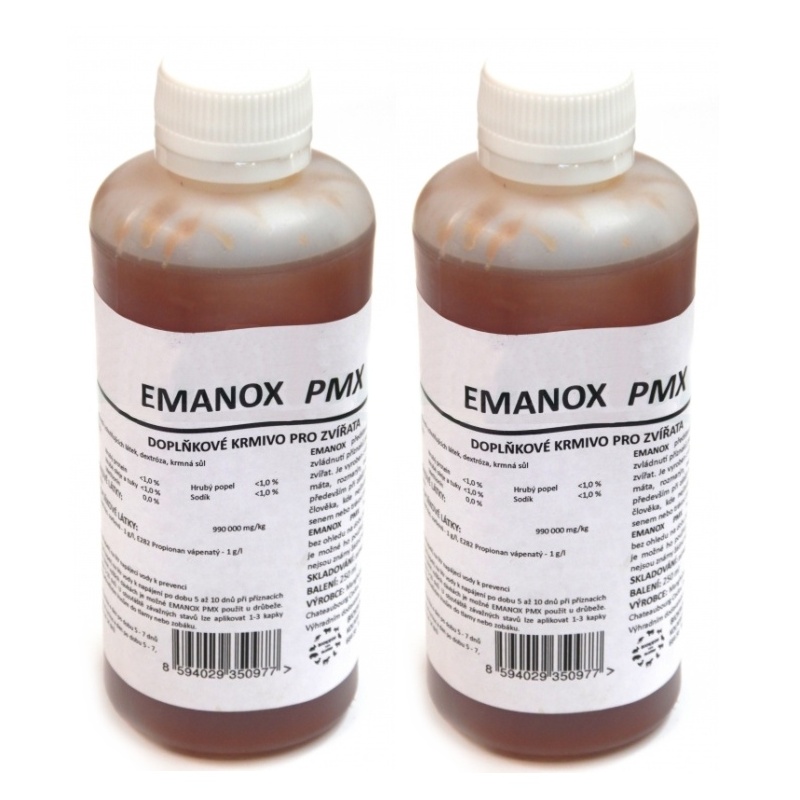 Emanox PMX je nový prírodný prípravok proti kokcidióze, vyrobený zo zmesi liečivých rastlinných extraktov – oregáno, materina dúška, mäta, rozmarín, majoránka, cesnak a ďalšie byliny. Tekutá forma je určená predovšetkým na podávanie vo vode na napájanie alebo v mlieku pre malé prežúvavce.