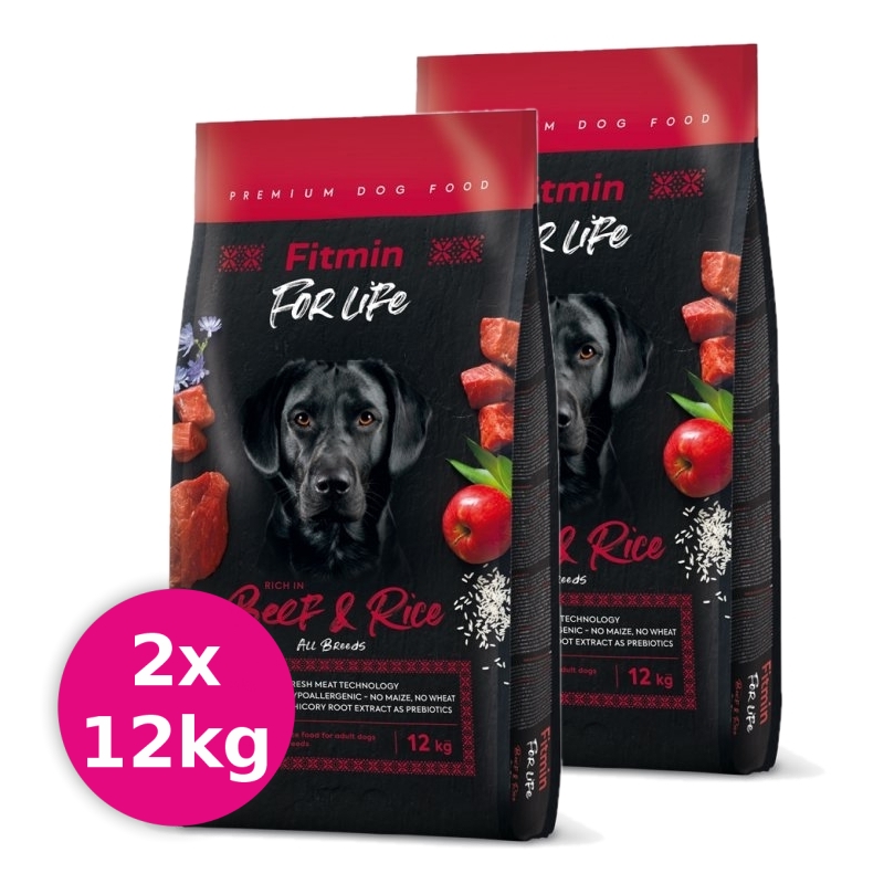 FITMIN Dog For Life Beef & Rice 2x12kg VÝHODNÉ BALENIE