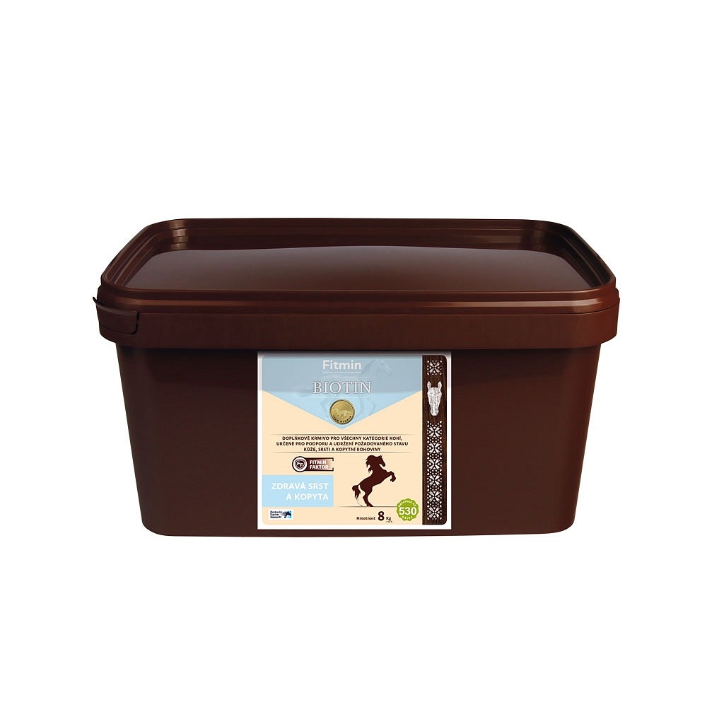 Granulované doplnkové krmivo Fitmin Horse Biotin je určené pre všetky kategórie koní na podporu kvality kopytnej rohoviny, zdravej kože a lesklej srsti. Obsahuje biotín a organicky viazaný zinok, ktoré sú kľúčové pre pevnosť a rast kopýt.
