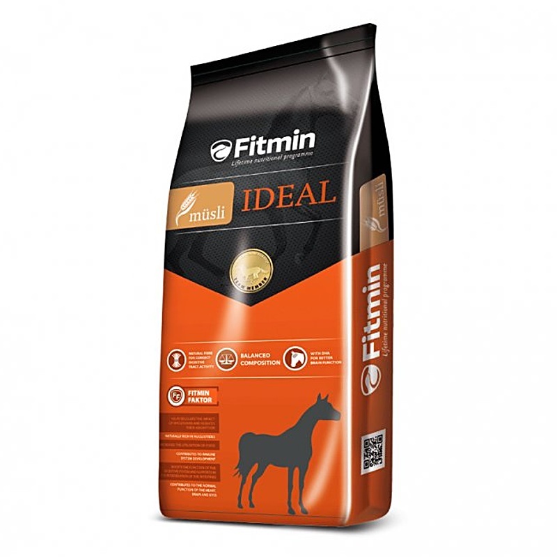 Fitmin Horse Müsli Ideal je doplnkové krmivo určené pre hobby kone všetkých vekových kategórií v ľahkej tréningovej záťaži. Poskytuje ľahko využiteľnú energiu vďaka kombinácii olejov a extrudovaných obilnín, čím podporuje kondíciu a vitalitu koňa bez zbytočného zaťaženia organizmu.