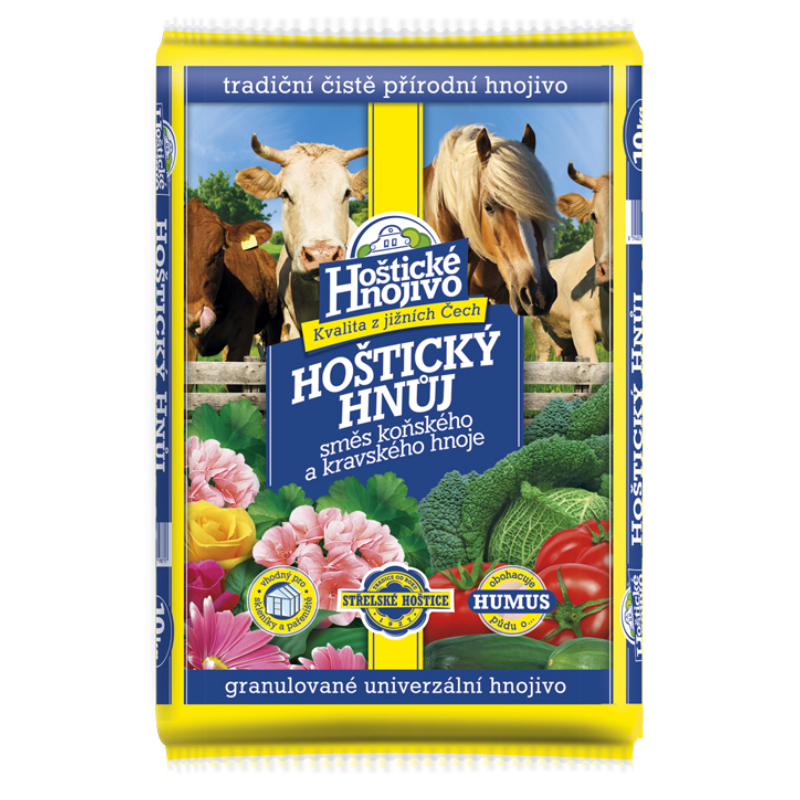 Hoštický hnoj je čisto prírodné organické hnojivo (zmes kravského a konského hnoja s rohovinou).