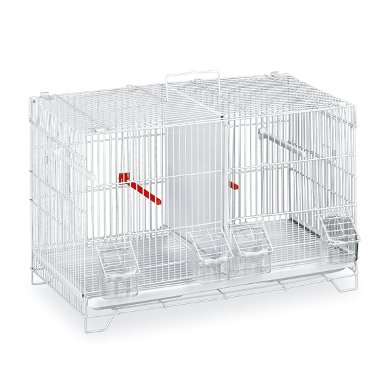 Súčasťou klietky je vonkajšie dlhý závesný žľab na krmivo