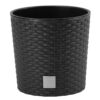 Plastový kvetináč z kolekcie RATO verne imituje ratanový výplet a je elegantným doplnkom do interiéru aj exteriéru. Vďaka kvalitnému spracovaniu a odolnému materiálu je vhodný na použitie na terase, balkóne aj v záhrade počas celého roka.