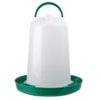 Napájačka sa skladá z dvoch častí – misky a kloboukového zásobníka. Klobúk naplníte vodou, nasadíte na neho misku a napájačku preklopíte do správnej polohy. Miska sa vplyvom gravitácie postupne plní vodou. Ako voda v miske ubúda, voda sa do nej prirodzene dopĺňa.