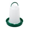 Napájačka sa skladá z dvoch častí – misky a kloboukového zásobníka. Klobúk naplníte vodou, nasadíte na neho misku a napájačku preklopíte do správnej polohy. Miska sa vplyvom gravitácie postupne plní vodou. Ako voda v miske ubúda, voda sa do nej prirodzene dopĺňa.
