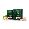 mäso a vedľajšie živočíšne produkty 73% (32% kuracie), vývar 26%, minerálne látky 1%.