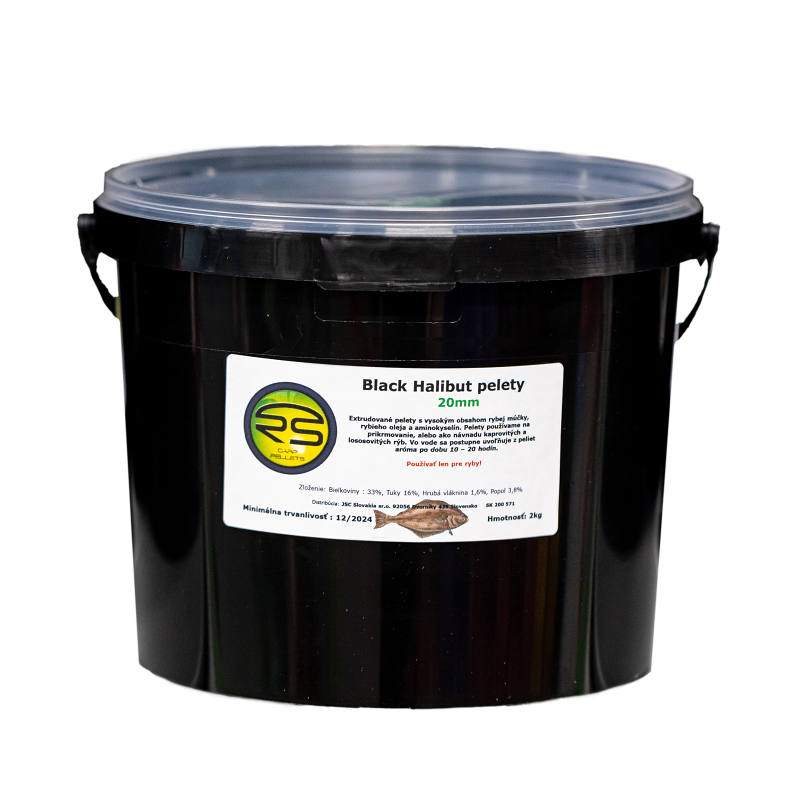 Pelety Black Halibut – 20mm s dierou 2kg vedierko