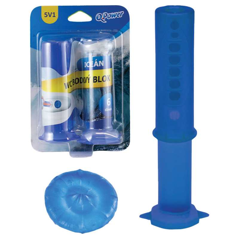 Q-Power WC bodový blok Oceán zabezpečuje dlhodobú čistotu, sviežosť a príjemnú vôňu vašej toalety. Každá dávka uvoľňuje aktívne zložky, ktoré pomáhajú odstraňovať nečistoty a zanechávajú hygienickú čistotu s vôňou oceánu po každom spláchnutí.