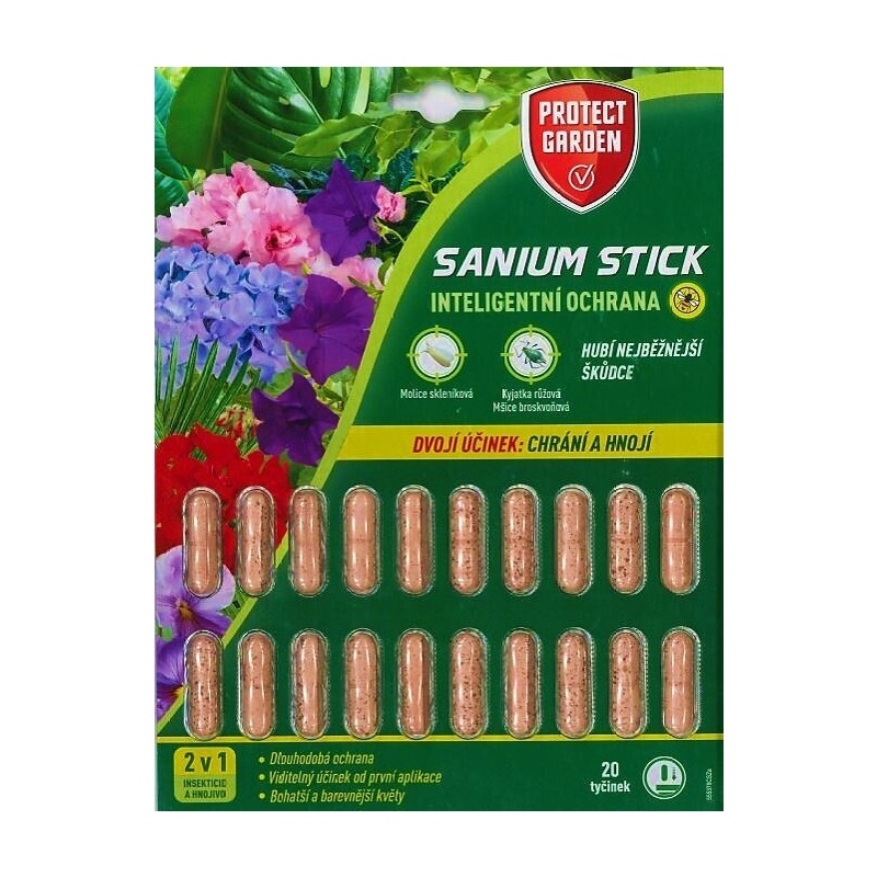 Sanium Stick je určený na ochranu izbových okrasných rastlín pestovaných v kvetináčoch v bytoch a zimných záhradách proti cicavým škodcom – vošky a molice. Účinná látka je ľahko prijímaná koreňmi rastlín a je ďalej distribuovaná do nadzemných častí. Prípravok takisto dodáva rastlinám všetky základné živiny a obsahuje špecifické látky (výťažky z morských rias, humínové látky, extrakt z cukrovej repy), ktoré zlepšujú celkový vzhľad rastliny (zelená farba, olistenie, rýchlejší rast, lepšie kvitnutie).