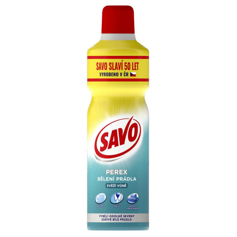 Savo perex svieža vôňa je parfumovaný prípravok na predpieranie a bielenie bielej a stálofarebnej bielizne automatických práčkach, ale aj na ručné bielenie. Účinne odstráni škvrny už vo fáze predpierania. Je mimoriadne účinný pri bielení polyesterových a bavlnených záclon.