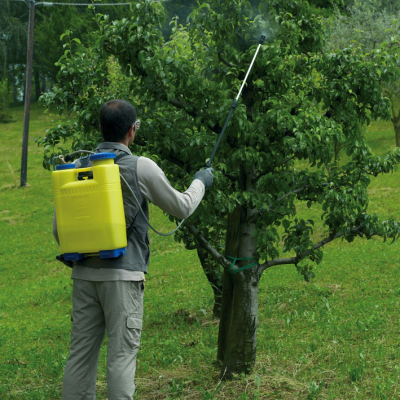 Tlak sa vytvára pumpovaním kovovou bočnou pákou (možnosť pravého aj ľavého ovládania). Odolný plast chránený proti UV žiareniu zaručuje dlhú životnosť aj pri častom používaní vonku. Súčasťou výbavy je teleskopická tyč, nastaviteľná tryska a silné ramenné popruhy pre pohodlnú prácu aj na väčších plochách.