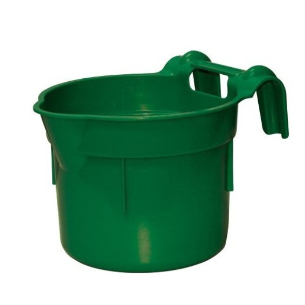 Prenosný kŕmny závesný žľab pre dobytok, vyrobený z pevného a odolného plastu. Praktický tvar s nalievacím hrdlom a držadlom uľahčuje manipuláciu a napĺňanie krmivom. Objem: 8 l, rozmery: 27x35x25 cm. Vybavený pevnými plastovými ramenami na bezpečné zavesenie do zariadení s max. hrúbkou 60 mm.