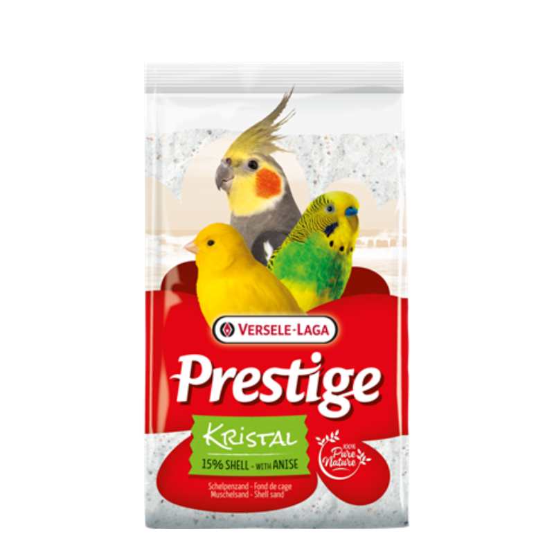 Kvalitný biely mušľový piesok s jemnou zrnitosťou a príjemnou vôňou anízu, určený pre exotické vtáctvo. Prestige Kristal Shell Sand je sterilizovaný pri vysokej teplote, bezprašný a ekologický. Slúži ako základný grit s obsahom drvených mušlí a lastúr, ktoré napomáhajú mechanickému drveniu potravy v žalúdku a podporujú zdravé trávenie.
