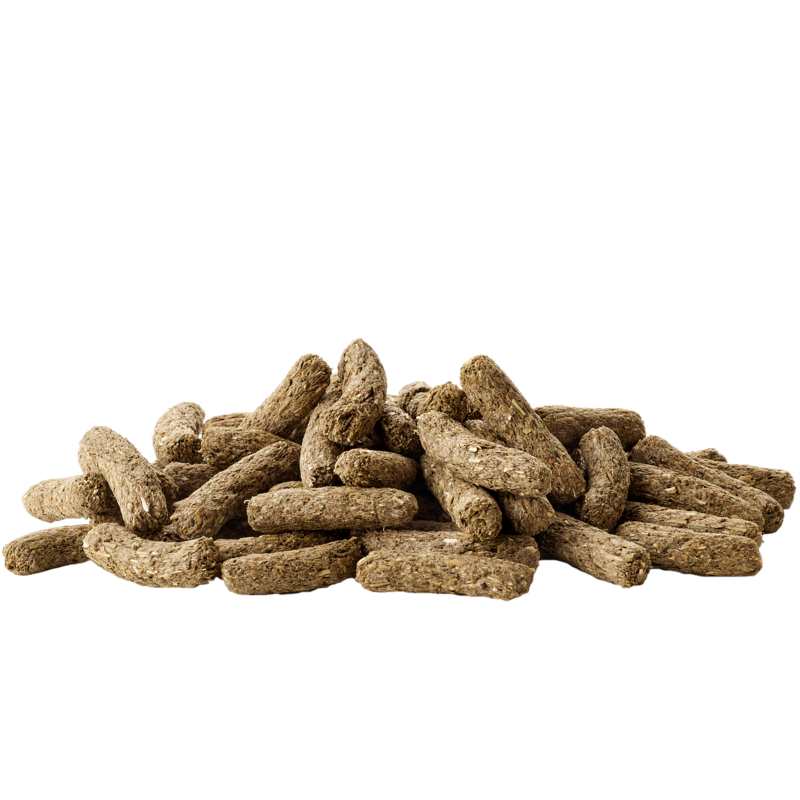 Vedľajšie produkty rastlinného pôvodu (bojínek lúčny 8 %), zelenina (mrkva 5,4 %*), semená, minerálne látky, bylinky (ďatelina lúčna, skorocel kopijovitý, ďatelina plazivá, rebríček obyčajný) 1 %, fruktooligosacharidy, juka.