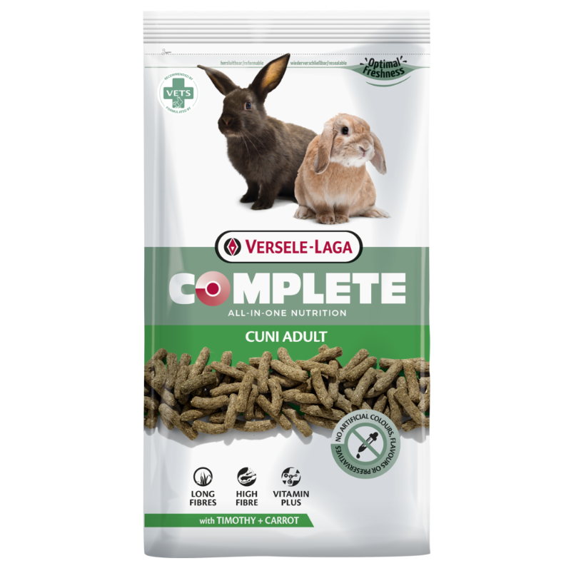 Kompletné extrudované krmivo „všetko v jednom“ určené pre dospelé trpasličie a domáce králiky. Každá peleta obsahuje rovnomerne vyvážené zloženie živín, čím sa zabraňuje vyberaniu jednotlivých zložiek a zabezpečuje sa optimálny príjem všetkých potrebných látok. Receptúra bohatá na vlákninu je špeciálne prispôsobená fyziologickým potrebám dospelých králikov a podporuje zdravé trávenie, zuby aj celkovú vitalitu. Krmivo bolo vyvinuté veterinármi na základe moderných vedeckých poznatkov.