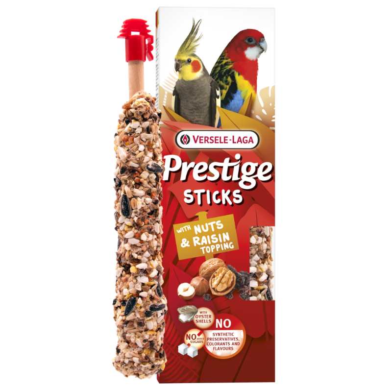 Doplnkové krmivo pre stredne veľké papagáje vo forme extra veľkých pečených tyčiniek so semenami, orechmi a hrozienkami. Tyčinky sú chutnou a výživnou maškrtou, ktorá spestrí každodennú stravu a zároveň poskytuje vtákom zábavu pri ozobávaní.